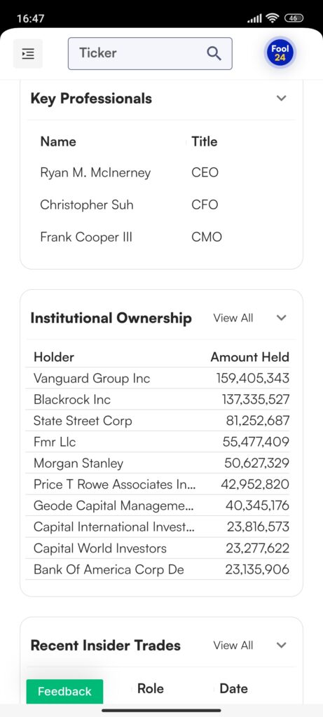 Evaluate Depth of Ownership Data: Premium platforms often break down ownership by quarter, sector, and fund type for better granularity.